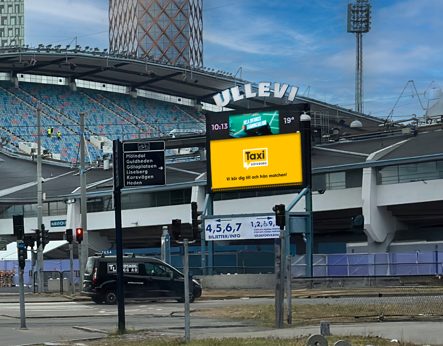 Ullevi är samlingsplatsen för nästan alla större evenemang av det sportsliga och musikaliska slaget i Göteborg. Här sitter en stor och en mindre LED-skärm i anslutning till entrén på Ullevi.
